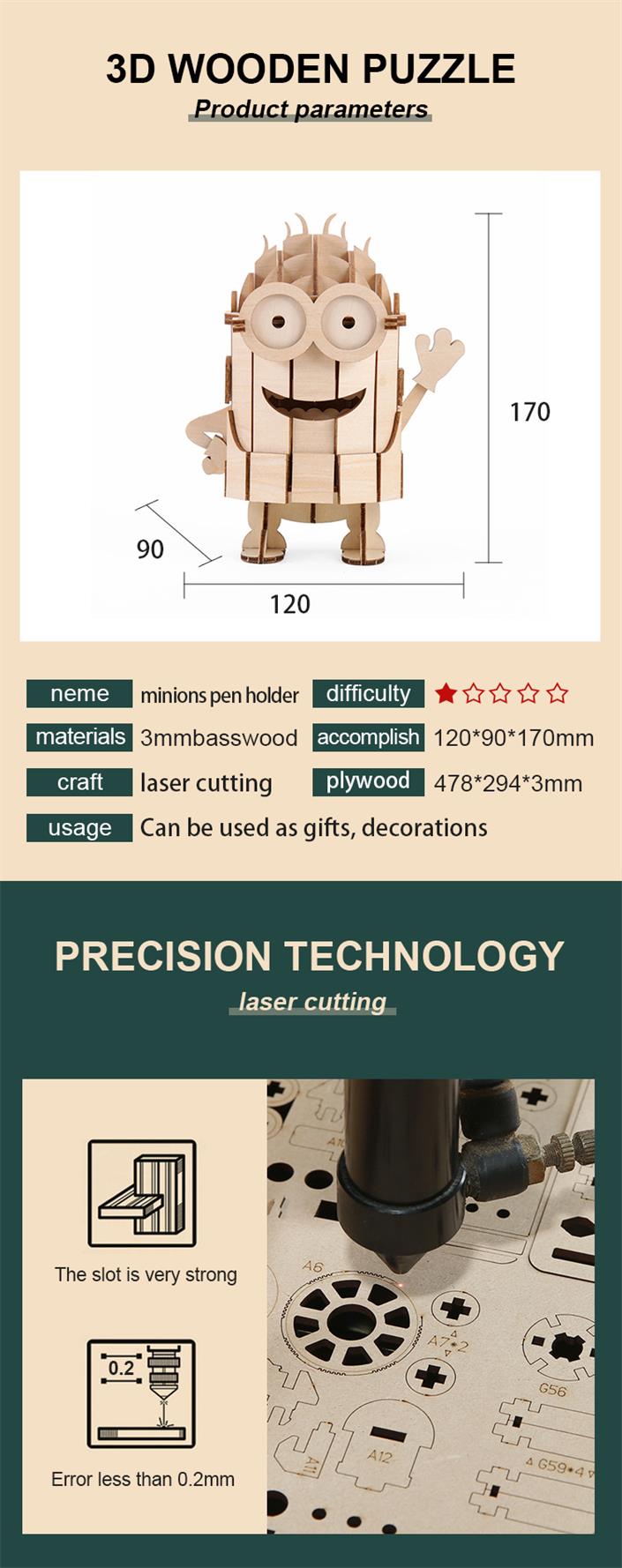 Home > Products > 3D Wooden Puzzle > Wooden Minions Pen Holder