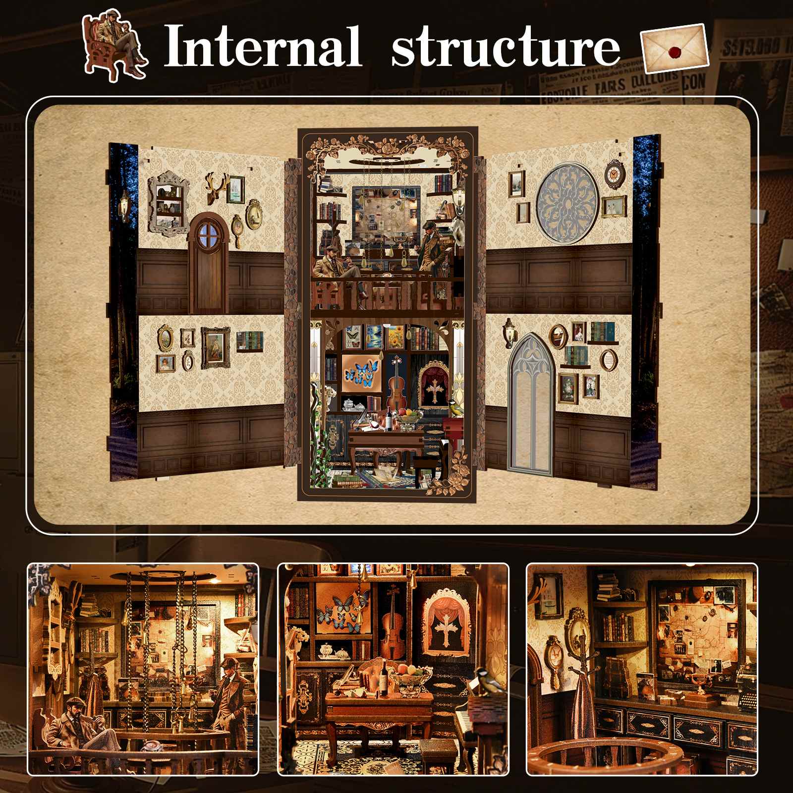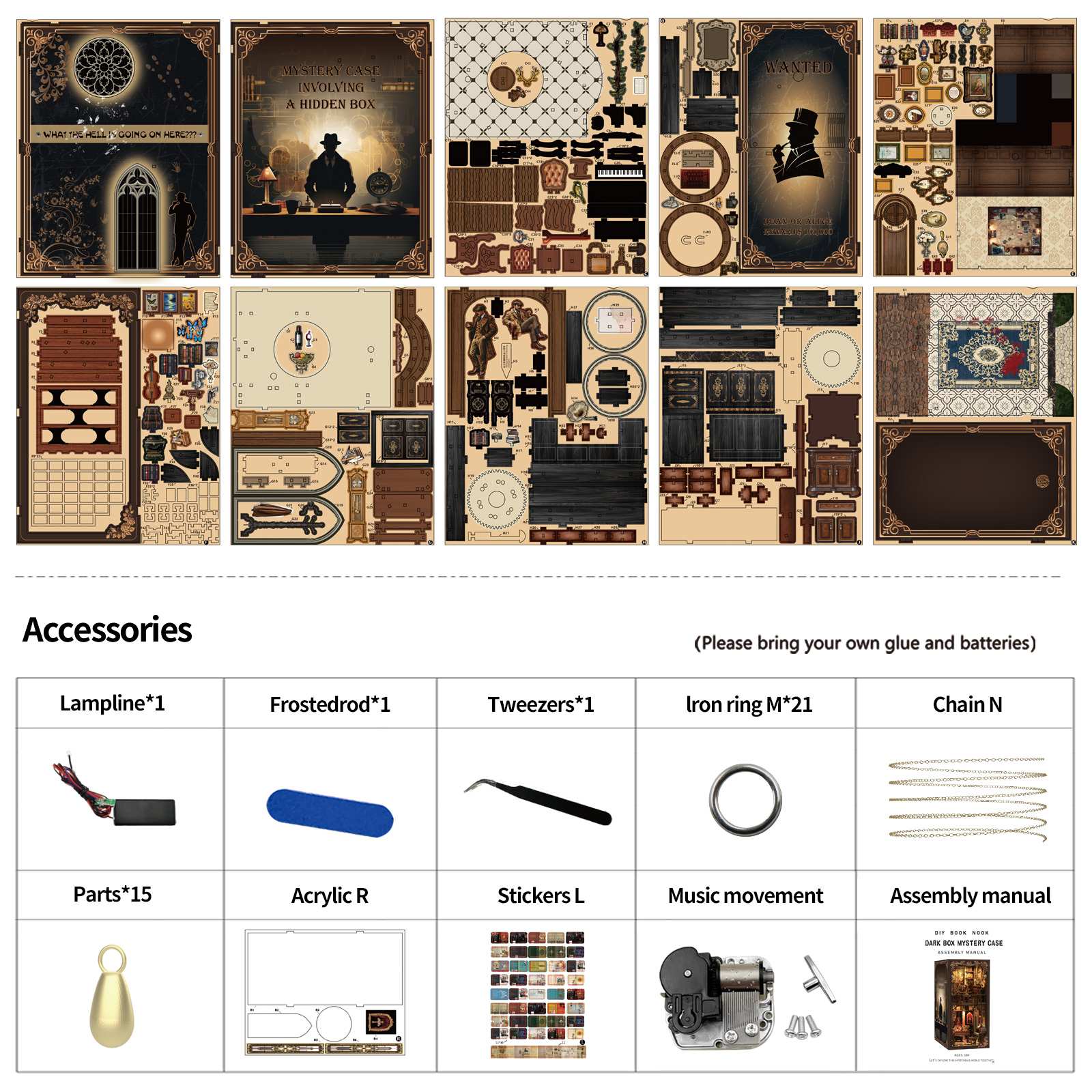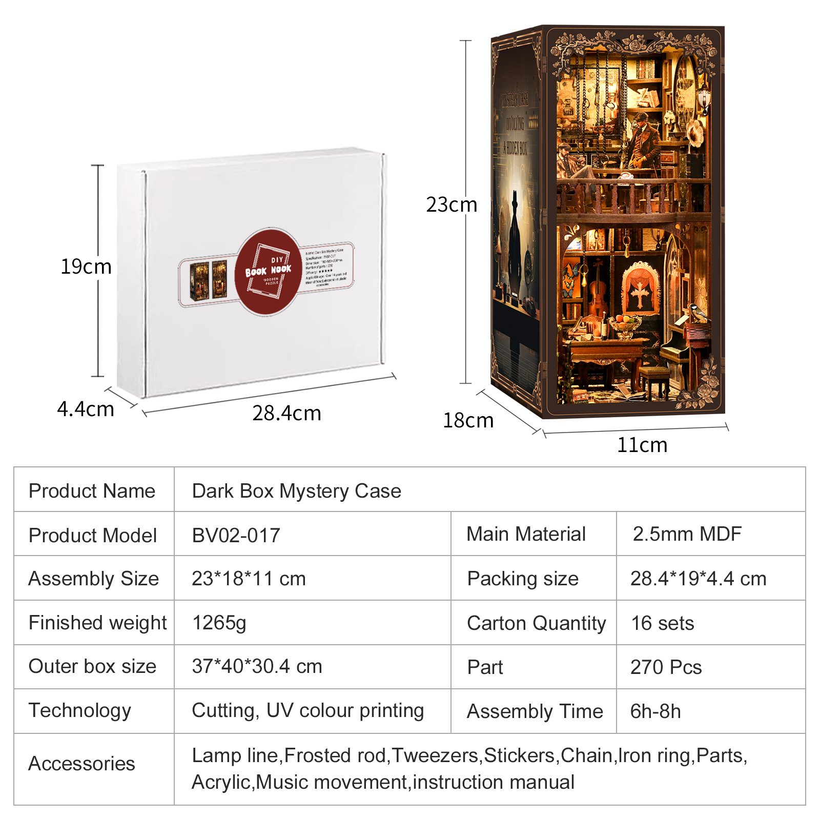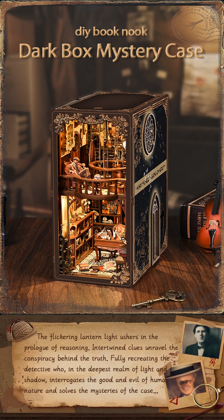 Step into a miniature world of suspense and intrigue with the Dark Box Mystery Case DIY Booknook Kit (Model: BV02-017). Designed to fully immerse you in the world of a detective, this kit recreates the thrill of unraveling mysteries through light, shadow, and music.
