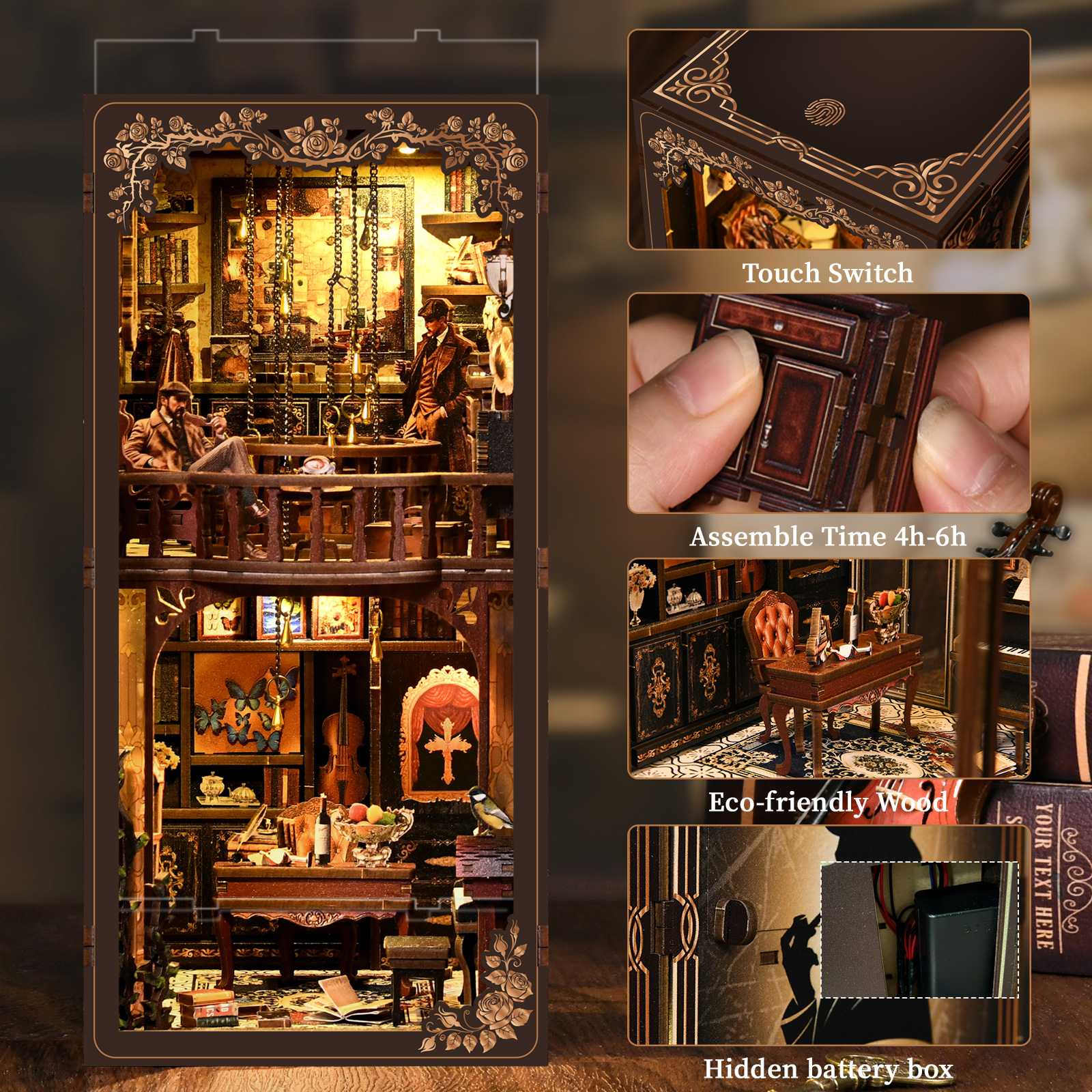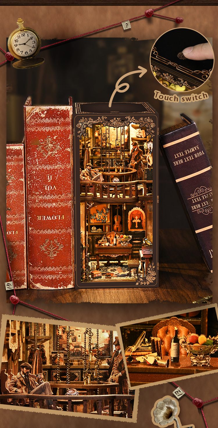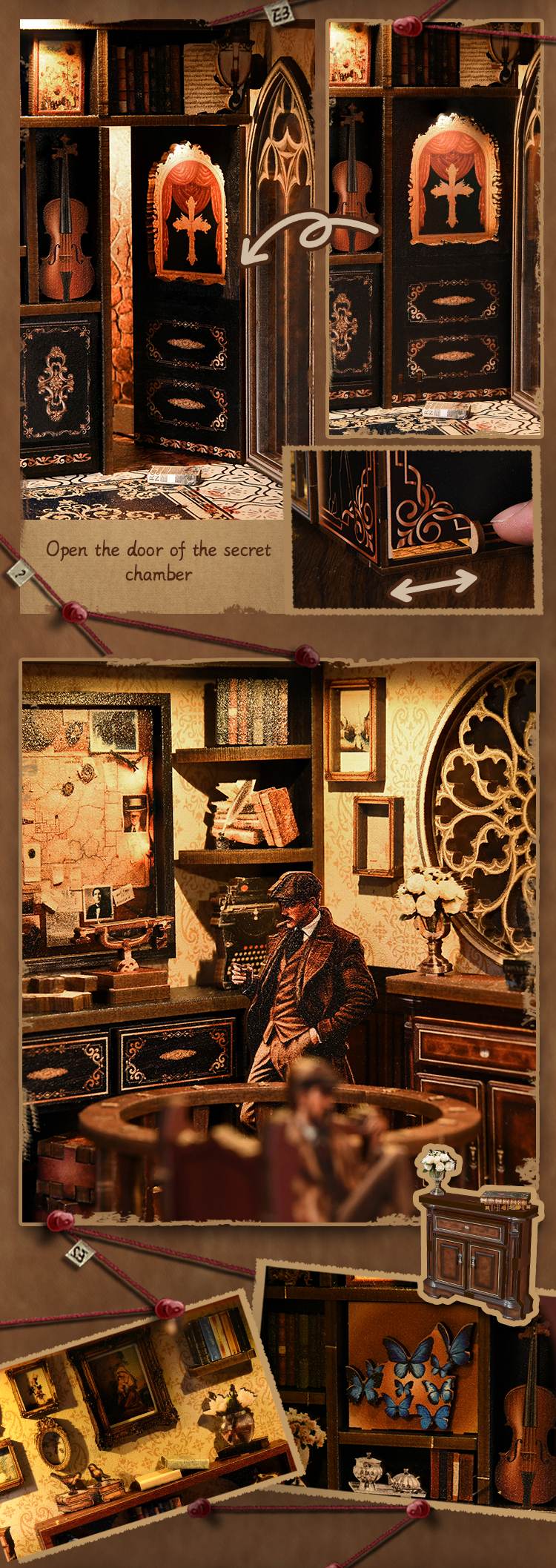Step into a miniature world of suspense and intrigue with the Dark Box Mystery Case DIY Booknook Kit (Model: BV02-017). Designed to fully immerse you in the world of a detective, this kit recreates the thrill of unraveling mysteries through light, shadow, and music.