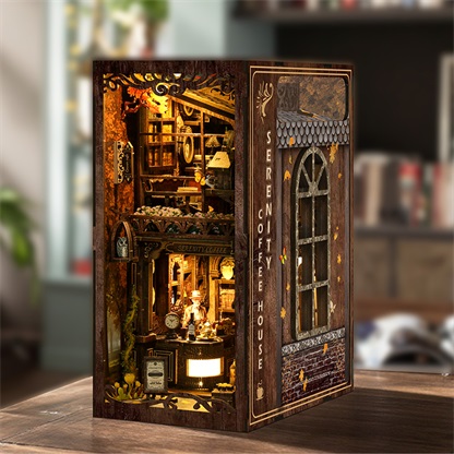 Create a cozy reading corner with the Serenity Coffee House DIY Book Nook. This charming miniature kit captures the warmth of a quiet café, complete with tiny tables, chairs, books, and glowing LED lights. Perfect for DIY lovers, bookworms, and coffee fans. Easy to assemble and makes a thoughtful handmade gift or a unique bookshelf insert.
