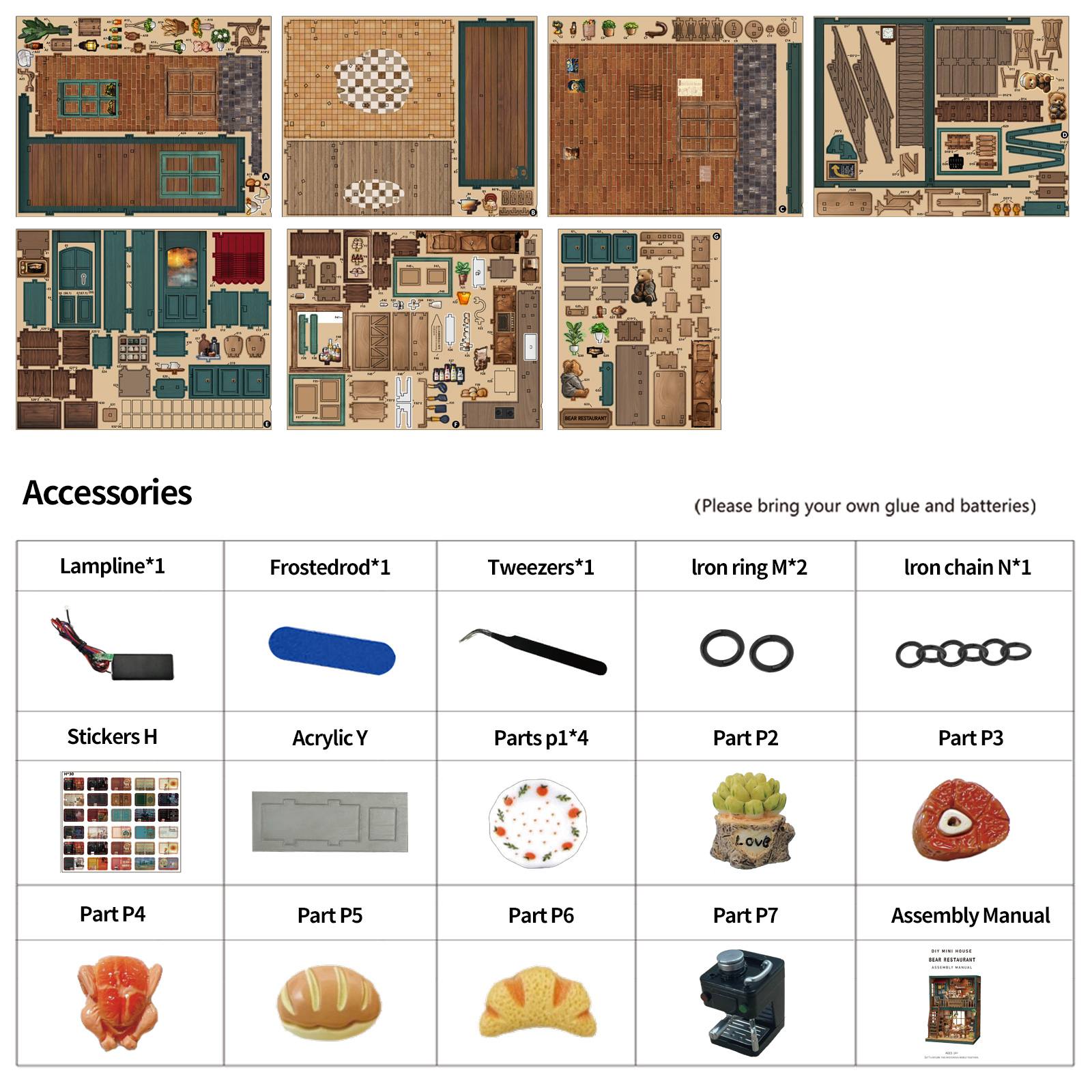 Comes with all parts and a pair of tweezers for easy assembly of tiny pieces. Stickers, chains, and metal rings allow you to personalize and decorate your miniature restaurant exactly how you like.