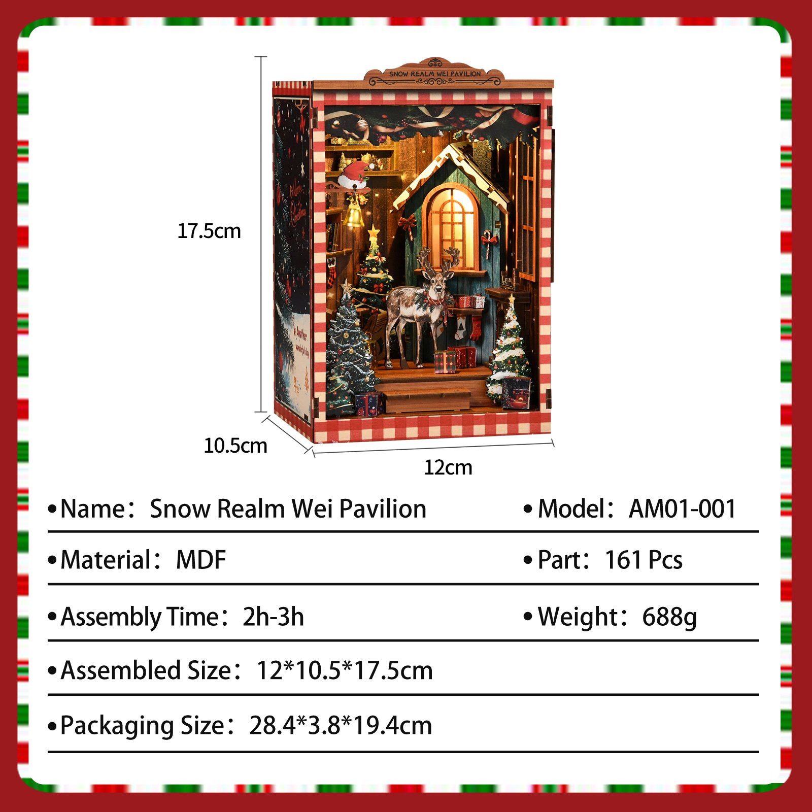 Premium Material & Perfect Size: Made from high-quality MDF for durability, the finished house measures 12 × 10.5 × 17.5 cm, making it a compact yet eye-catching piece. The packaging size (28.4 × 3.8 × 19.4 cm) keeps all 161 pieces secure and organized for easy use.