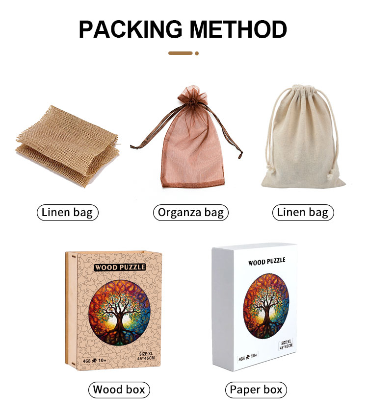 A4: The puzzle can be packaged in a Linen bag, Wood box, Paper box, or Organza bag, suitable for gifting or storage.